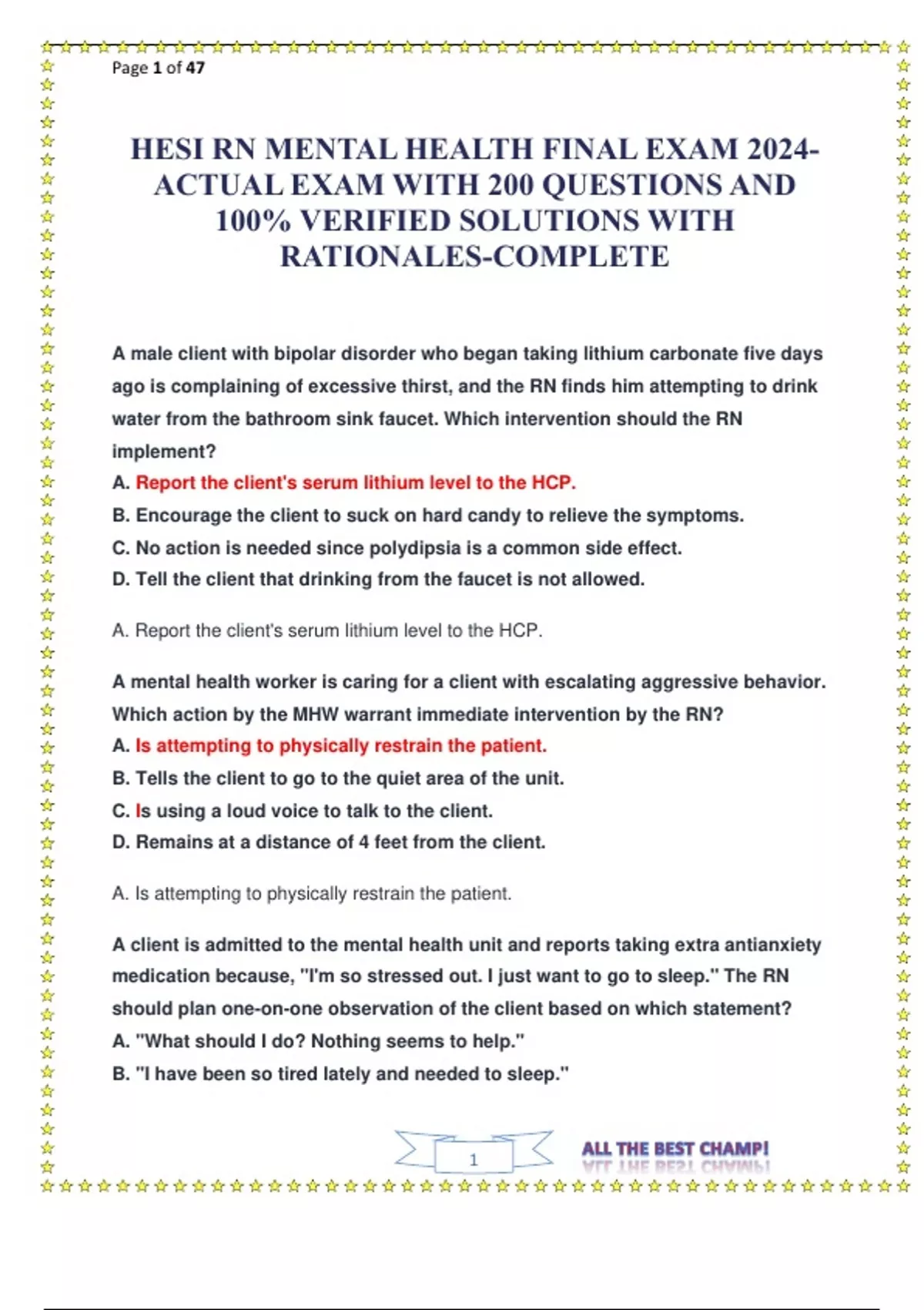 HESI RN MENTAL HEALTH FINAL EXAM 2024-ACTUAL EXAM WITH 200 QUESTIONS AND 100% VERIFIED SOLUTIONS WITH RATIONALES-COMPLETE