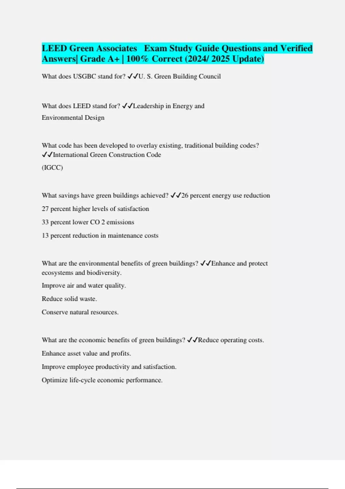 BUNDLE:: LEED Green Associate Exams Questions and Verified Answers| Grade A+ | 100% Correct (2024/ 2025 Update)