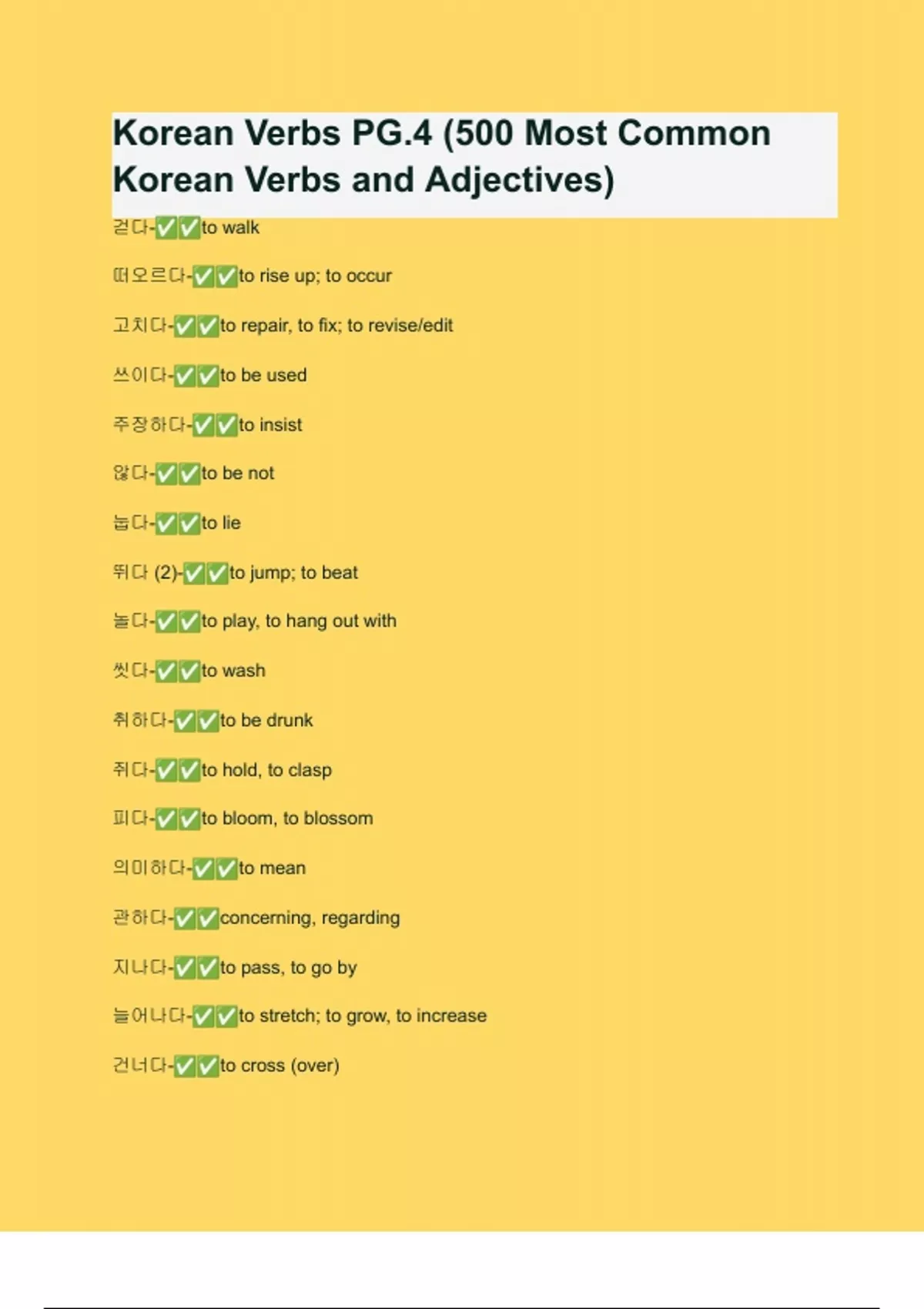 Korean Verbs PG.4 (500 Most Common Korean Verbs and Adjectives)