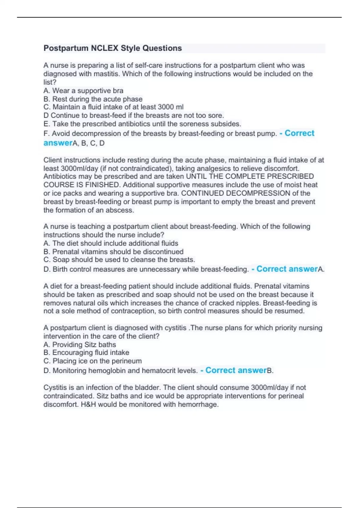 Postpartum NCLEX Style QuestionsPostpartum NCLEX Style QuestionsPostpartum NCLEX Style Questions