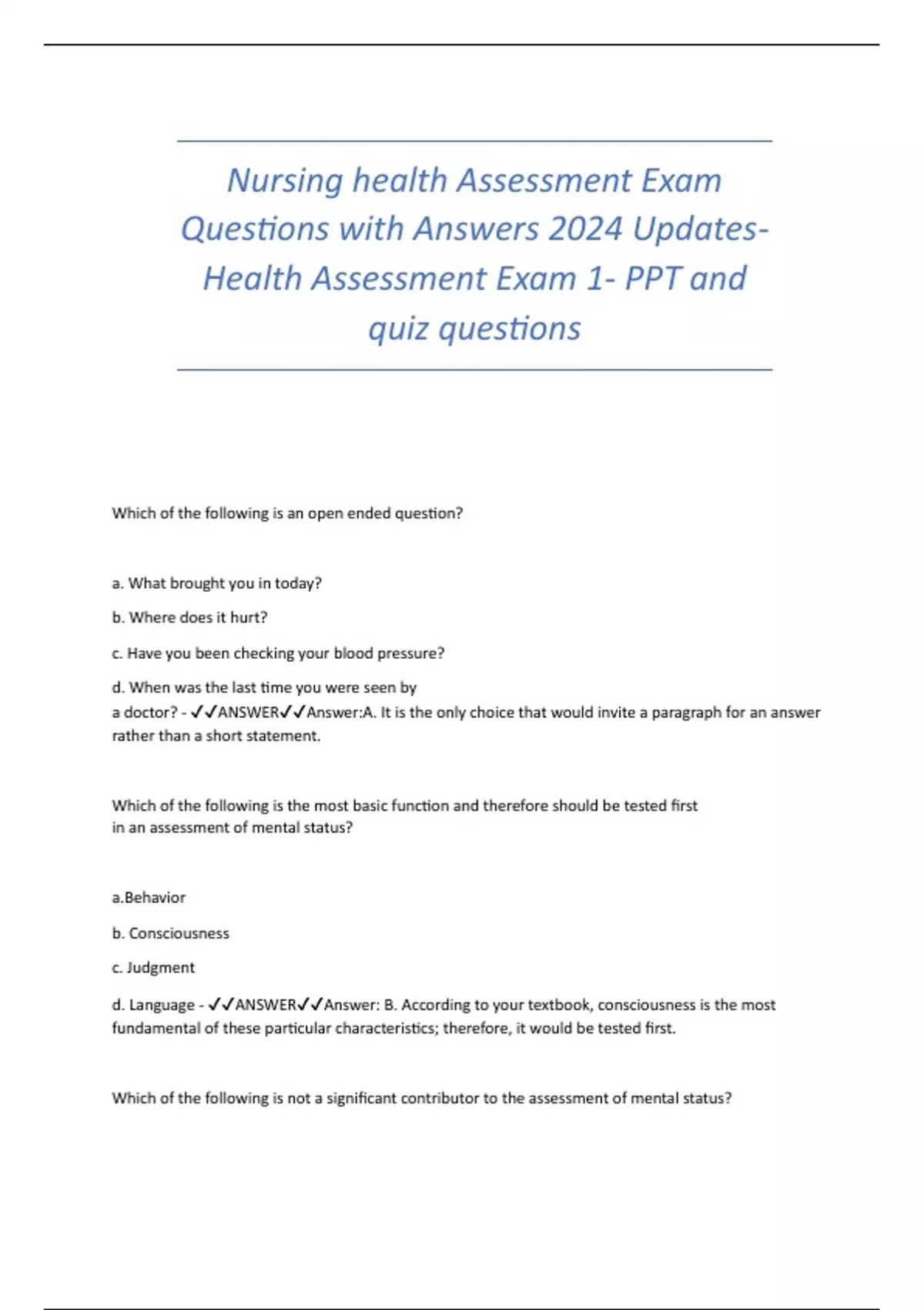Health Assessment Exam 1- PPT and