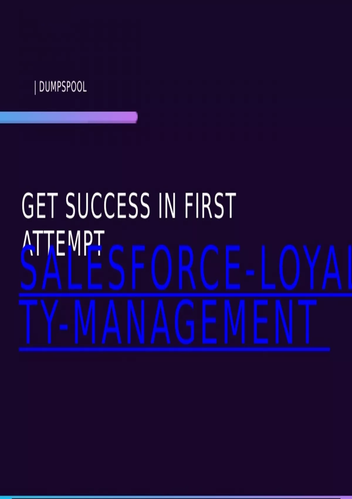Prepare effectively for the Salesforce Loyalty Management Exam with Dumpspool's comprehensive study materials. Our resources include updated exam dumps, interactive practice tests, and detailed study guides covering all exam topics. Gain confidence and excel in designing and managing Salesforce loyalty programs, ensuring customer engagement and retention.