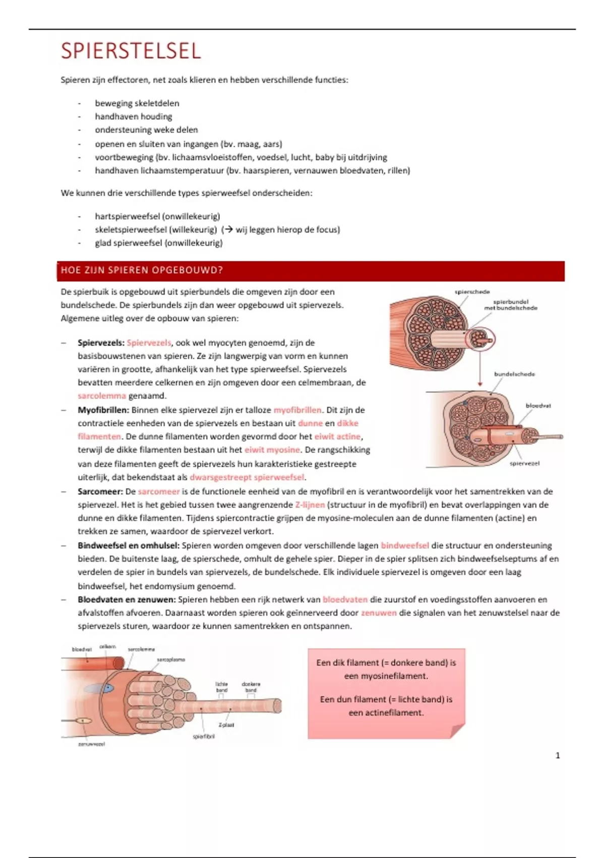  Sarcomeer: De sarcomeer is de functionele eenheid van de myofibril en is verantwoordelijk voor het samentrekken van de