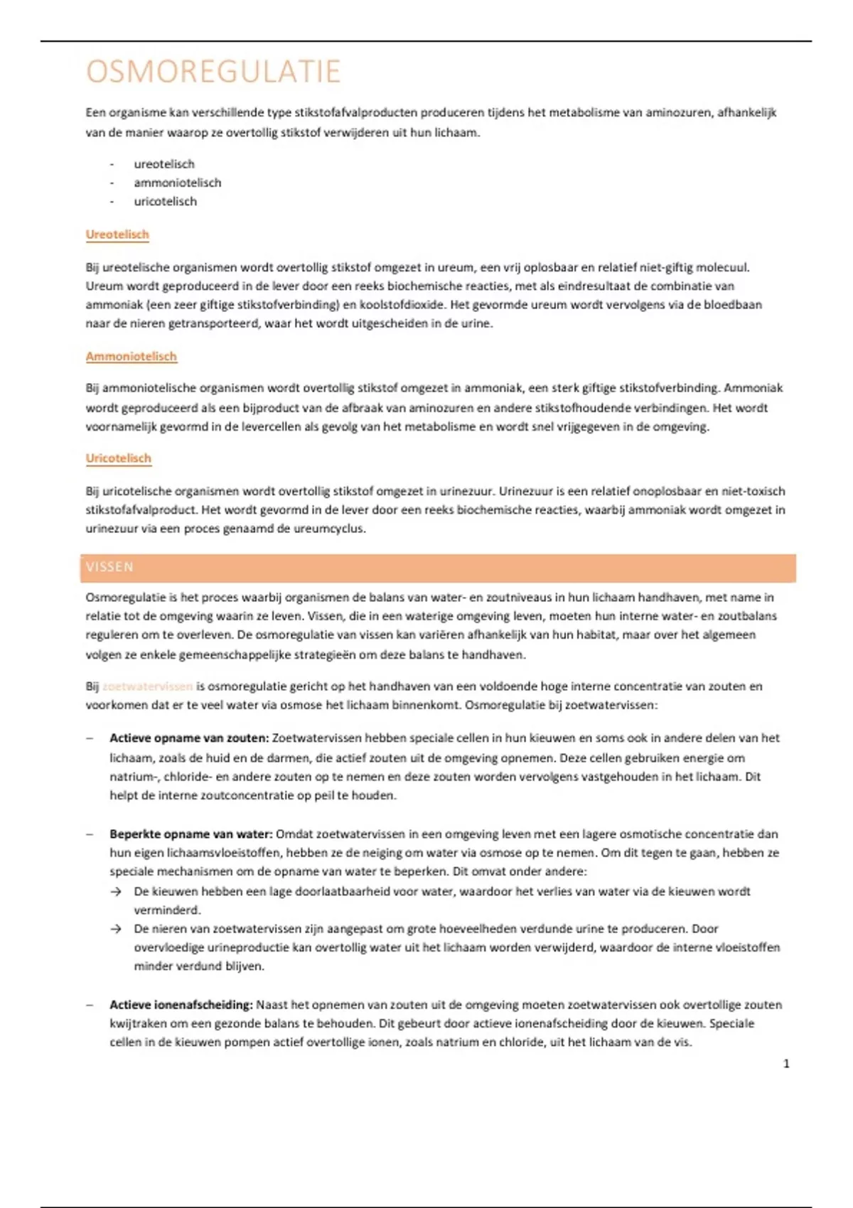 Het stikstofeindproduct van zoutwatervissen: ureum  ureotelisch