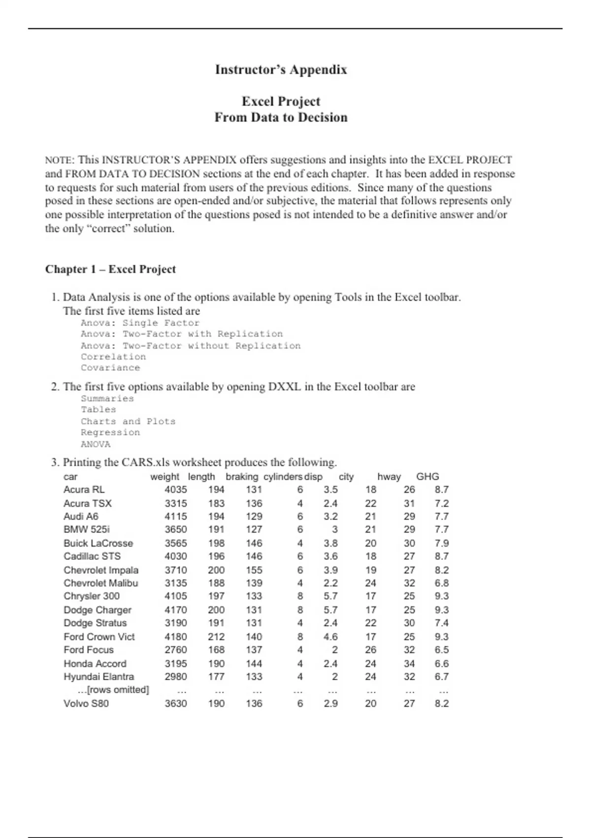 NOTE: This INSTRUCTOR’S APPENDIX offers suggestions and insights into the EXCEL PROJECT