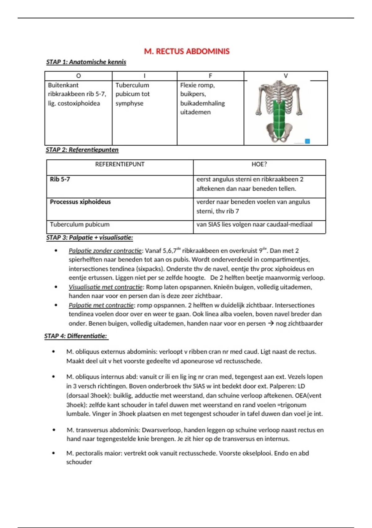 blad v rectus abdominis uitmaken. Palpeerbaar naast rectus abdominins als je handen legt