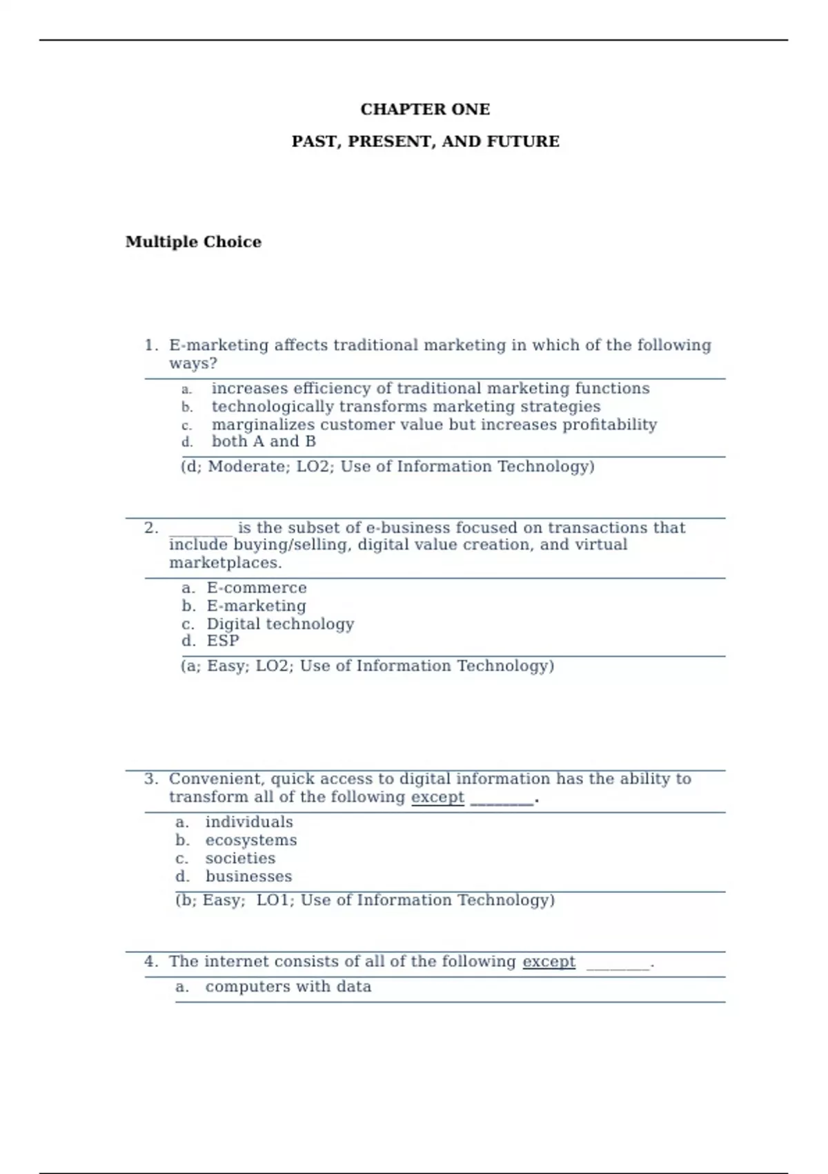 The test bank accompanying E-Marketing,Strauss,7e is your short-cut for exam success. It includes large pool of practice questions created specifically for the textbook used in your class. All answers included. 100% Authentic. Mastering those questions is a sure way to excel and pass the class.