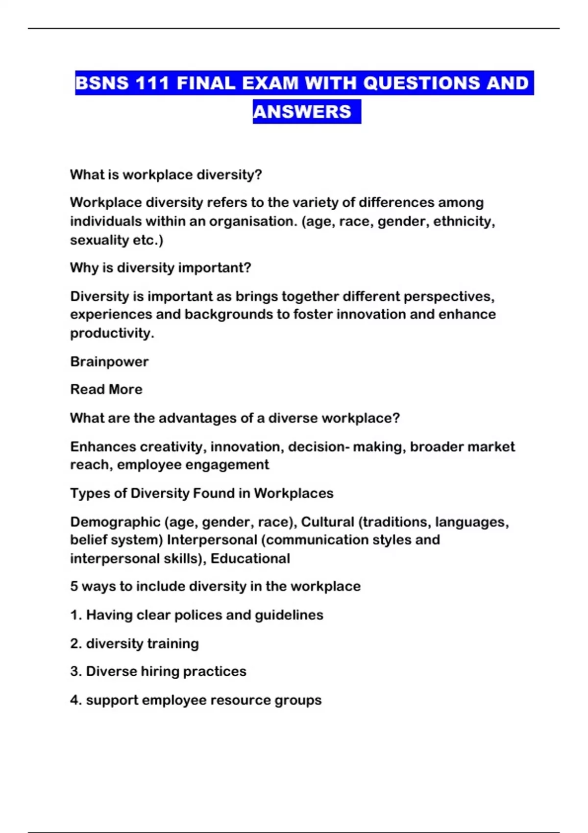 BSNS 111 FINAL EXAM WITH QUESTIONS AND ANSWERS ...