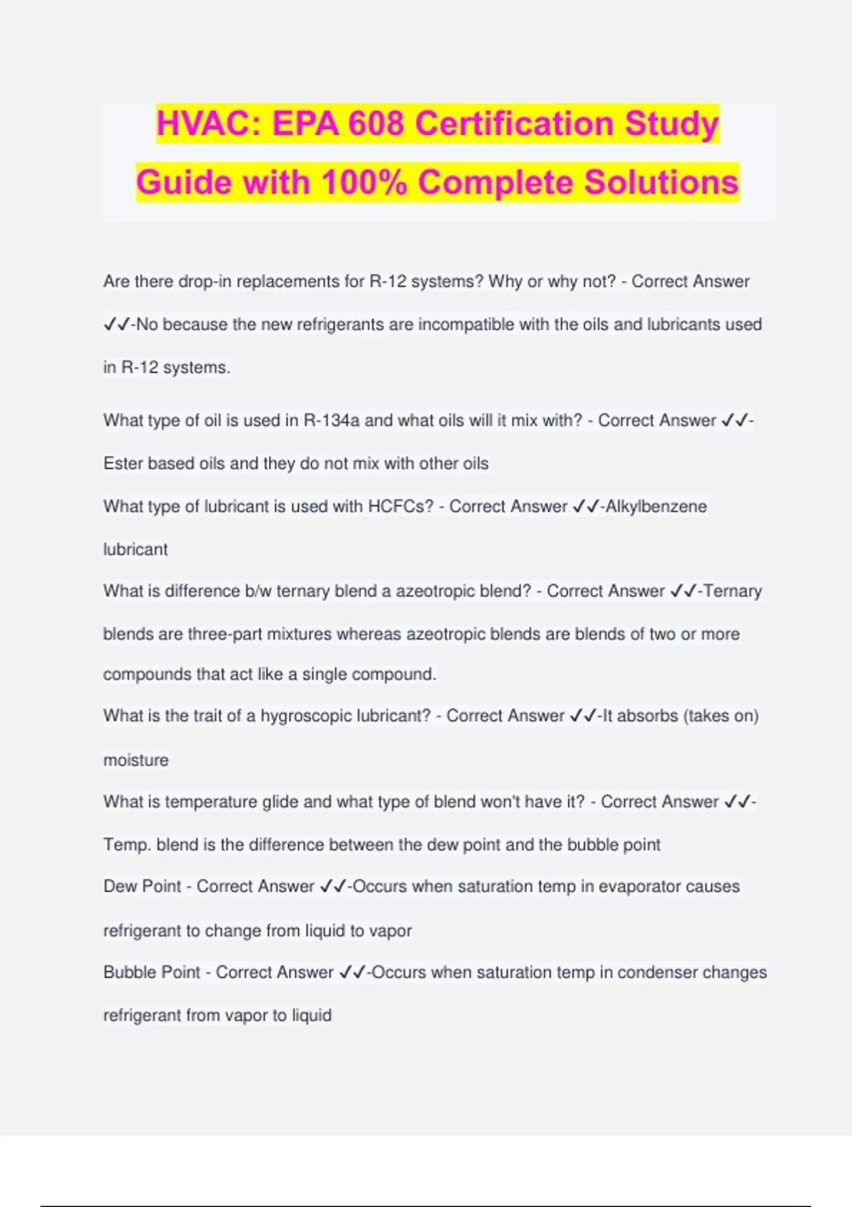 HVAC: EPA 608 Certification Study Guide with 100% Complete Solutions
