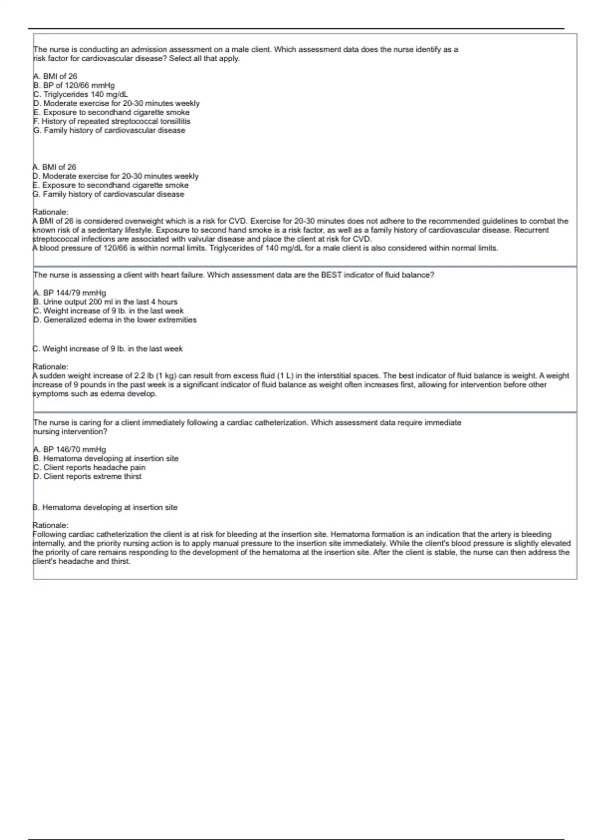 CARDIAC QUESTIONS WITH RATIONALES ANSWERS 100% CORRECT
