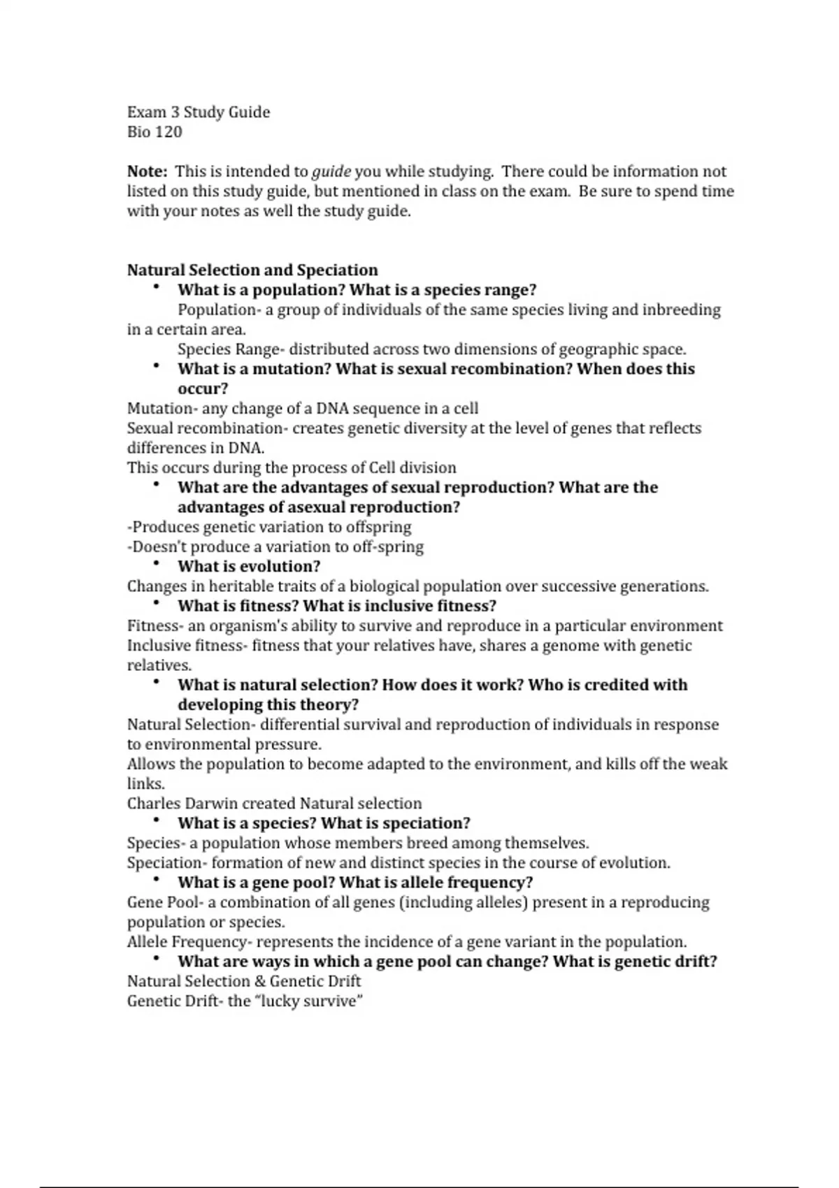 This is a review study guide for Biology 120 and Biology 141, this is a general education class.