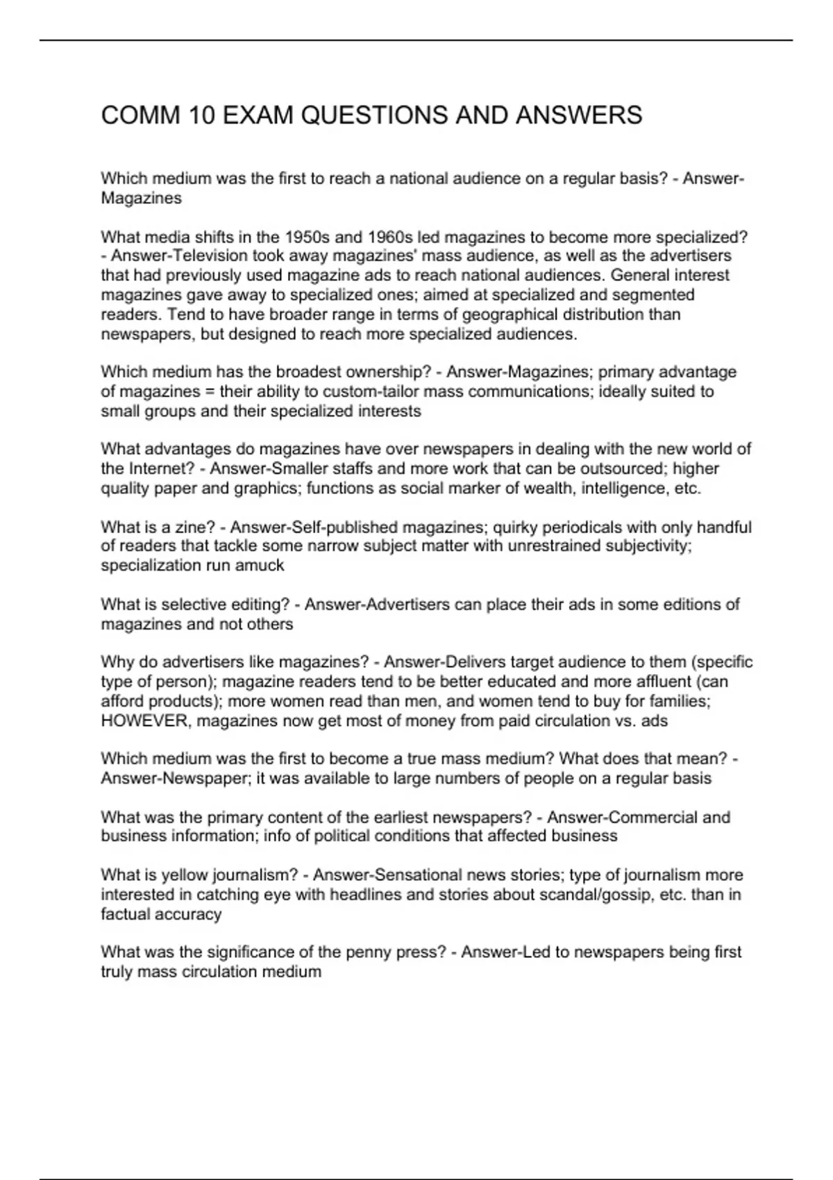 COMM 10 EXAM QUESTIONS AND ANSWERS