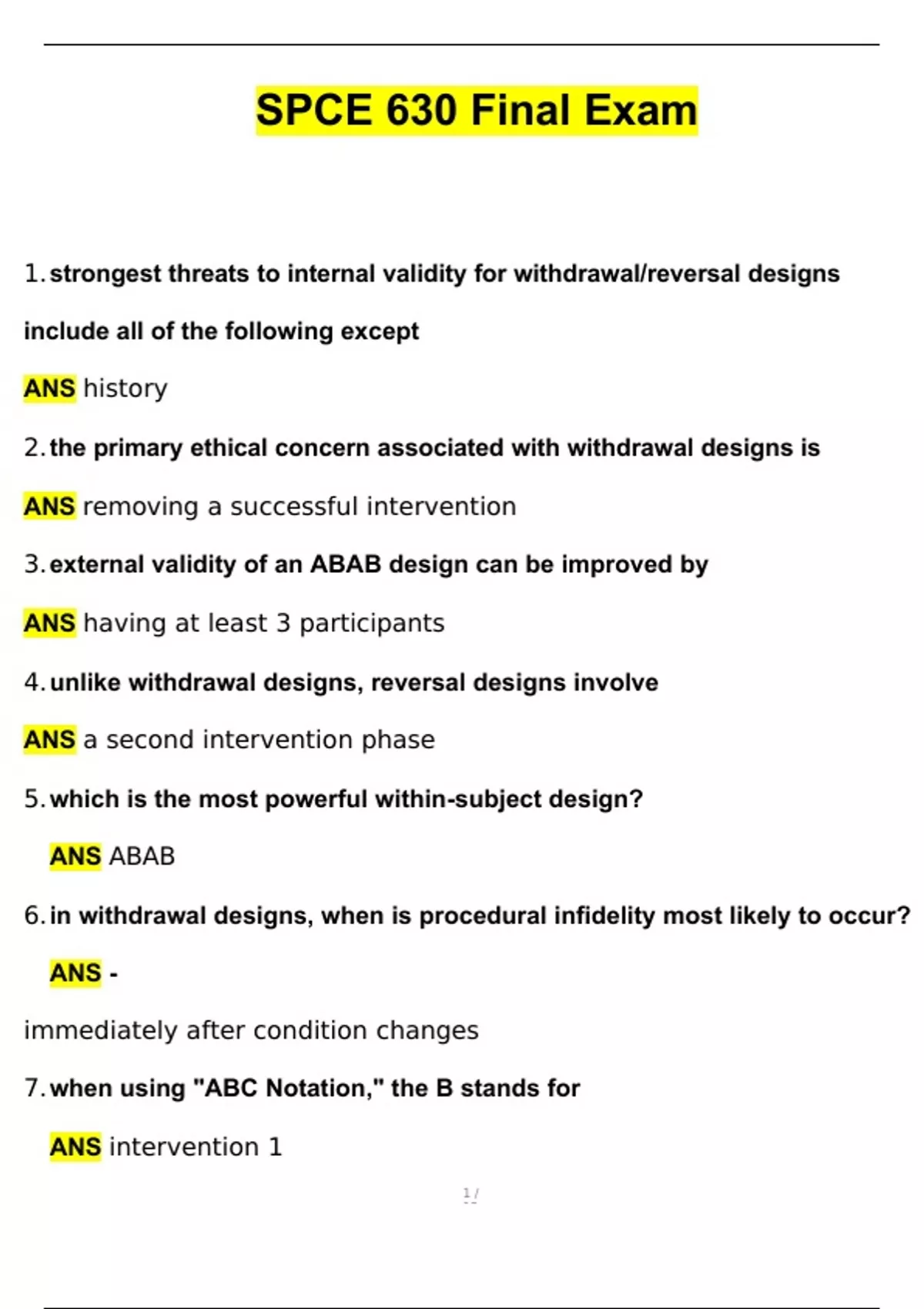 SPCE 630 Final Exam Questions & Answers Rated A+