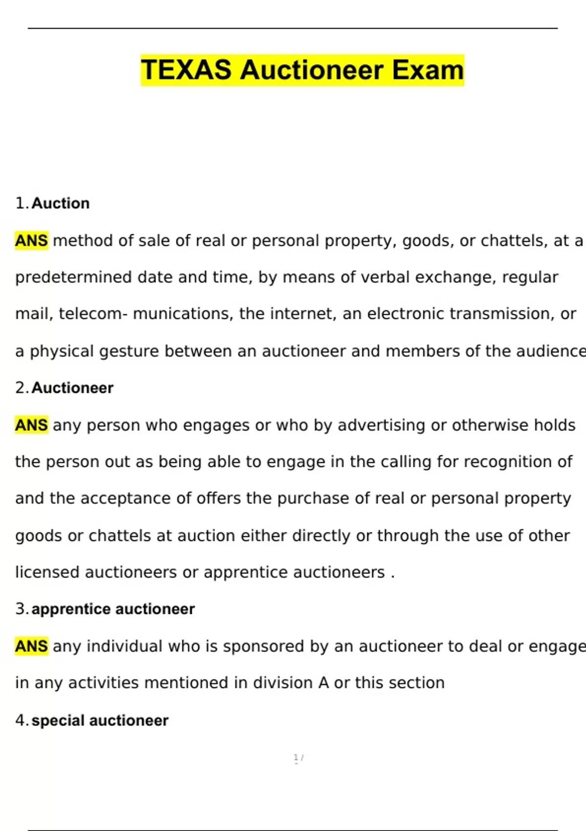 TEXAS Auctioneer Exam Questions with 100% Correct Answers | Verified | Latest Update