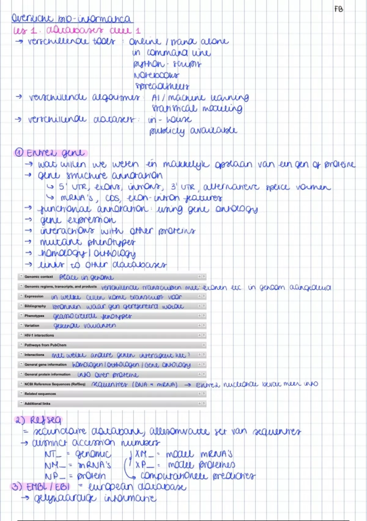 Samenvatting Bio-informatica Biomedische wetenschappen KUL