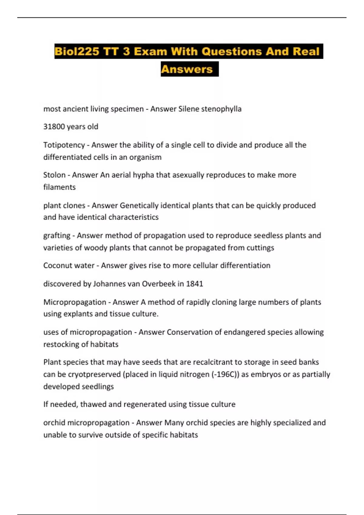 Biol225 TT 3 Exam With Questions And Real Answers ...
