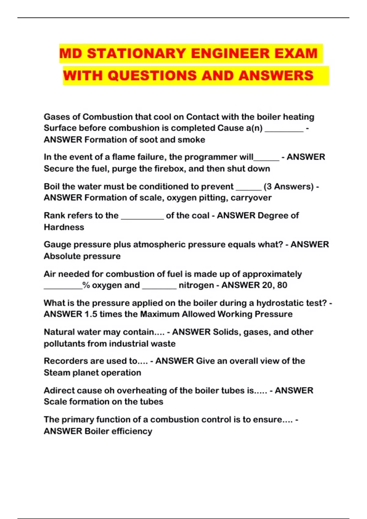 MD STATIONARY ENGINEER EXAM WITH QUESTIONS AND ANSWERS ...