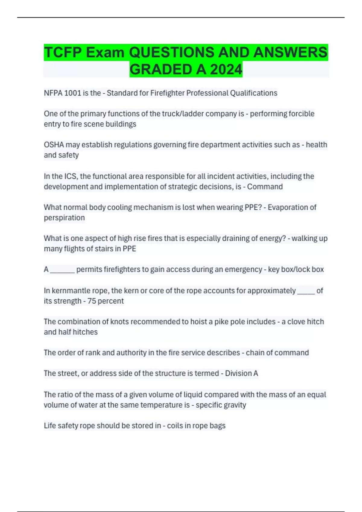 TCFP Exam QUESTIONS AND ANSWERS GRADED A 2024