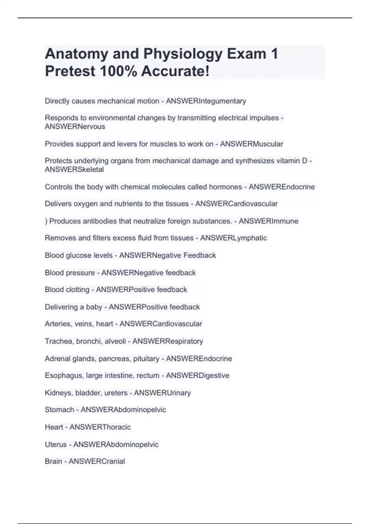 Anatomy and Physiology Exam 1 Pretest 100% Accurate!