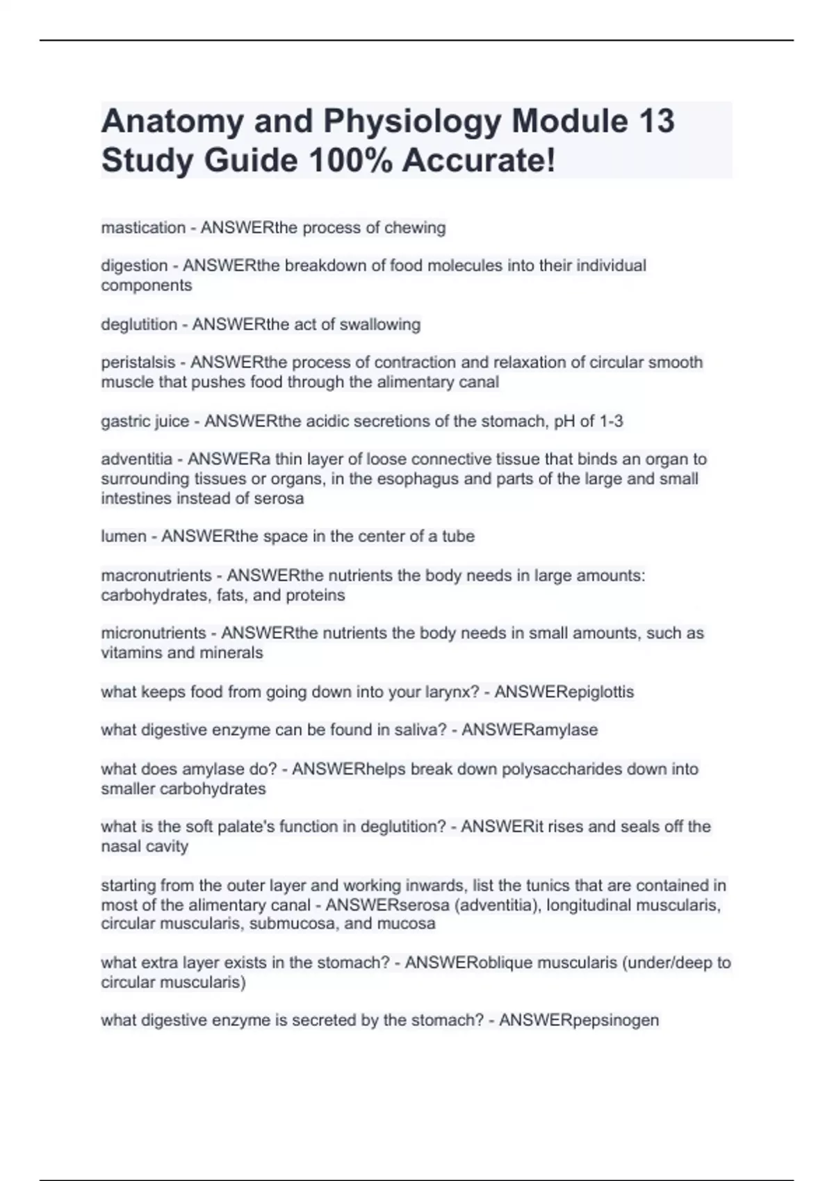 Anatomy and Physiology Module 13 Study Guide 100% Accurate!