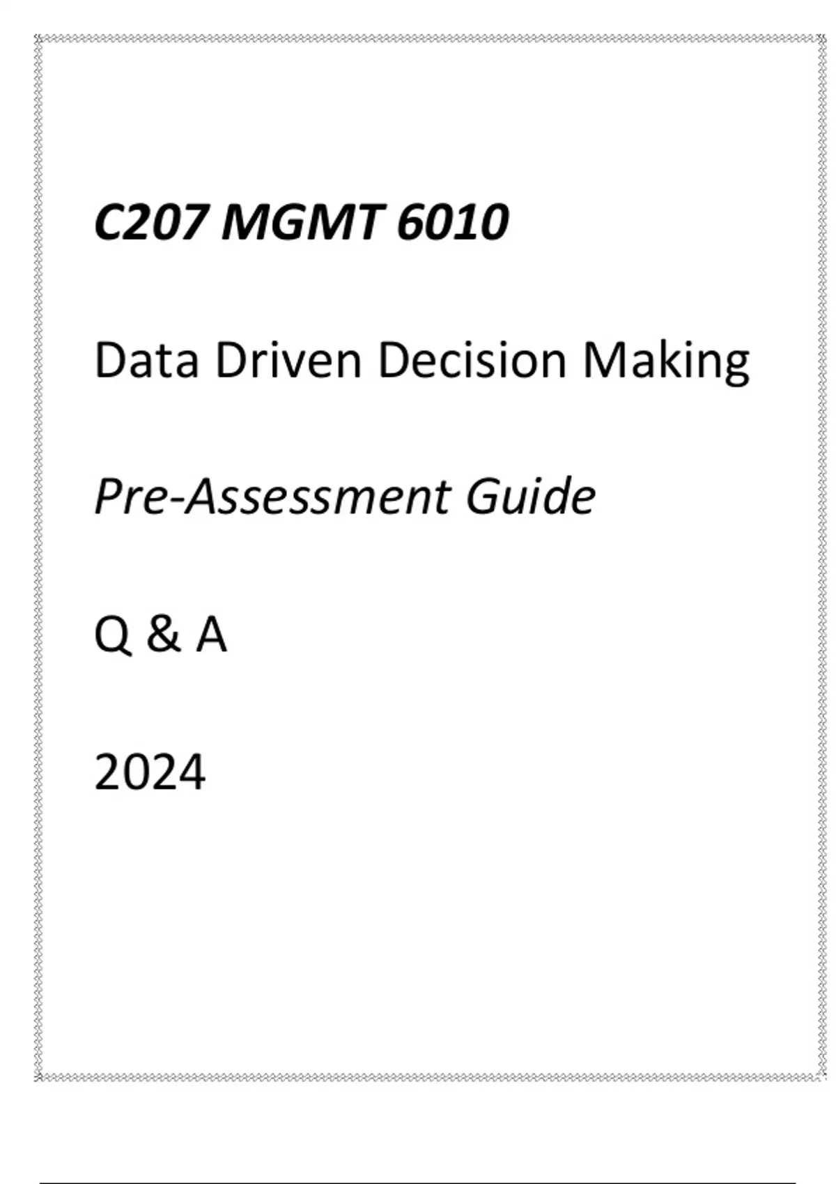 (WGU C207) MGMT 6010 Data Driven Decision Making Pre-Assessment Guide Q & A 2024.(WGU C207) MGMT 6010 Data Driven Decision Making Pre-Assessment Guide Q & A 2024.(WGU C207) MGMT 6010 Data Driven Decision Making Pre-Assessment Guide Q & A 2024.