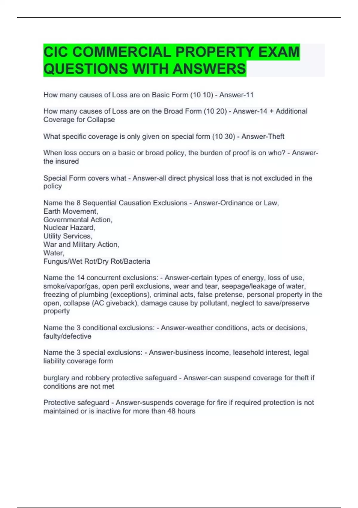 CIC- COMMERCIAL PROPERTY EXAM QUESTIONS WITH CORRECT ANSWERS