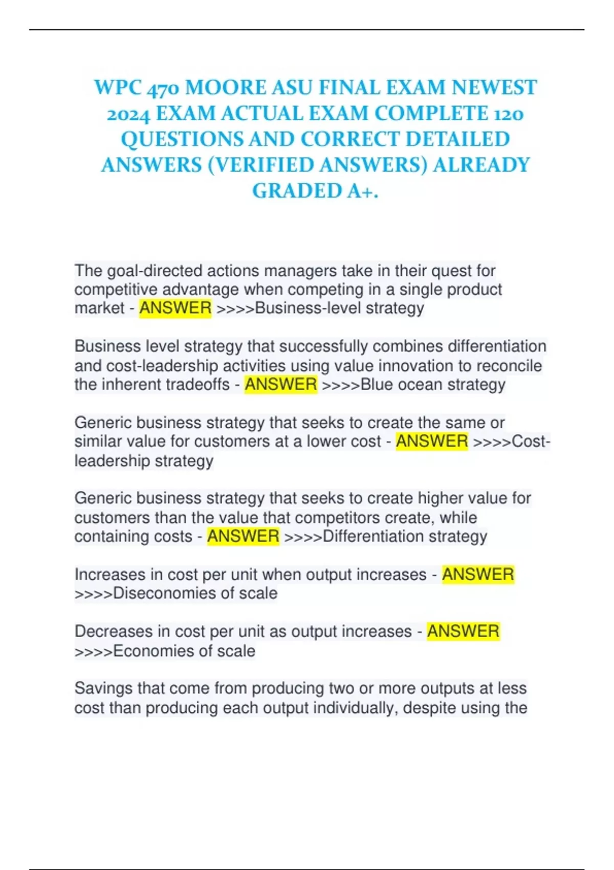 WPC 470 MOORE ASU FINAL EXAM NEWEST 2024 EXAM ACTUAL EXAM COMPLETE 120 QUESTIONS AND CORRECT DETAILED ANSWERS (VERIFIED ANSWERS) ALREADY GRADED A+.