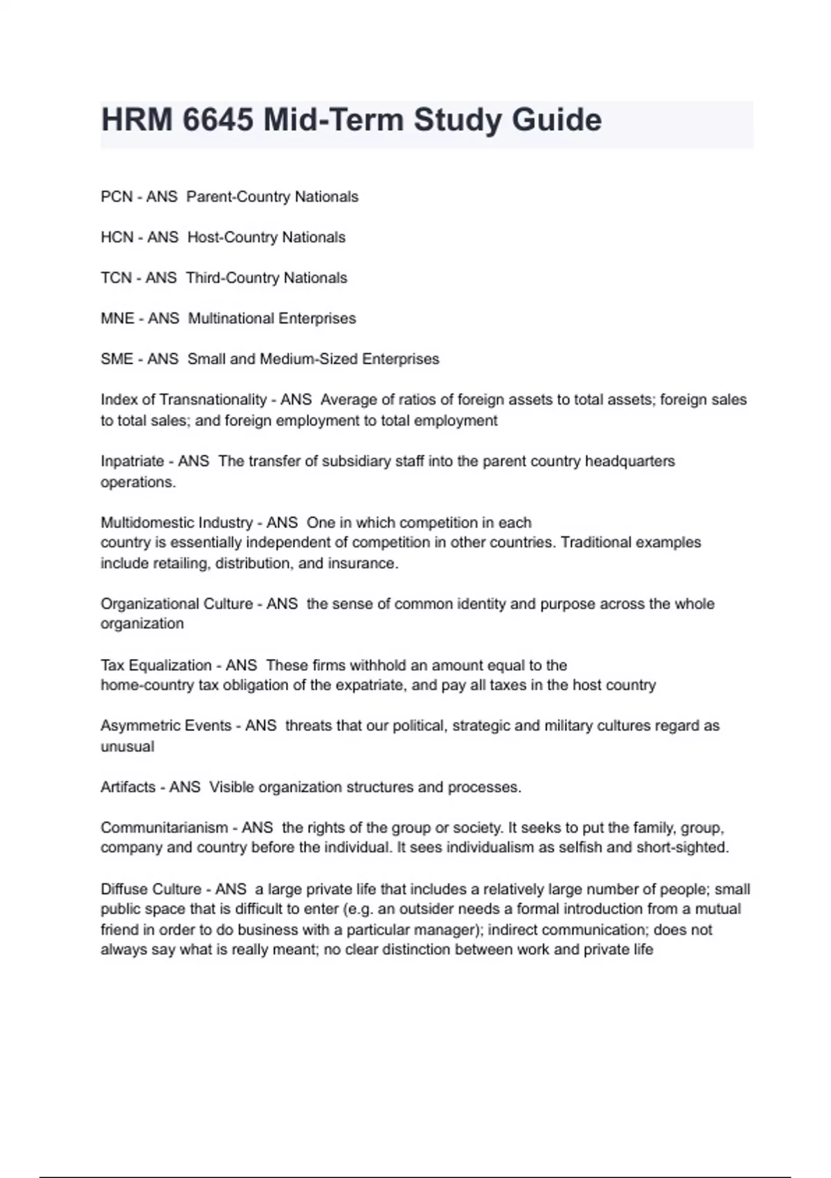 HRM 6645 Mid-Term Study Guide Exam 2024/2025 Questions With Correct Solutions.