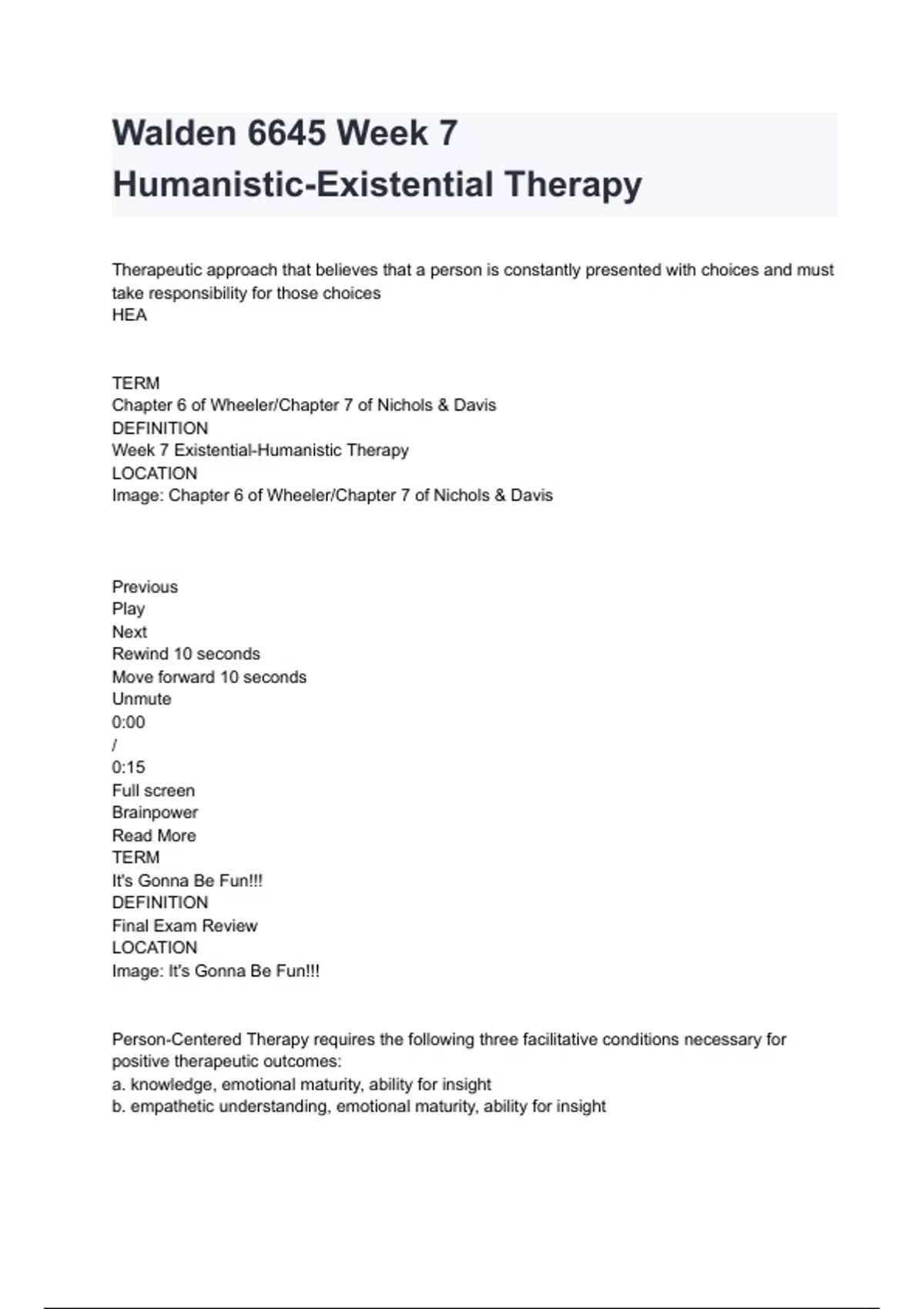 Walden 6645 Week 7 Humanistic-Existential Therapy Exam 2024/2025 Questions With Correct Solutions.