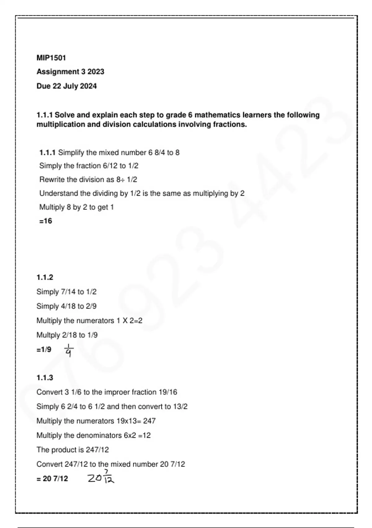 1.1.1 Solve and explain each step to grade 6 mathematics learners the following