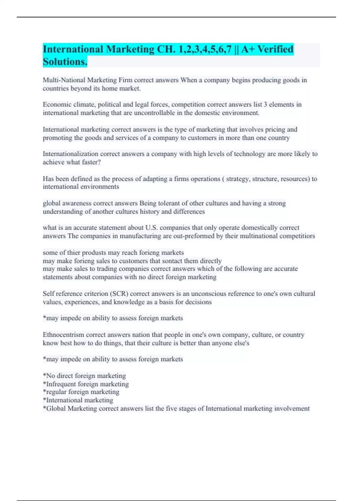 International Marketing CH. 1,2,3,4,5,6,7 || A+ Verified Solutions.