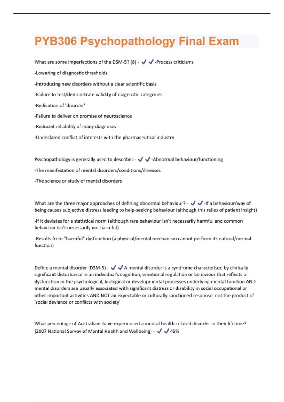 PYB306 Psychopathology Final Exam Questions with 100 % correct answers | verified