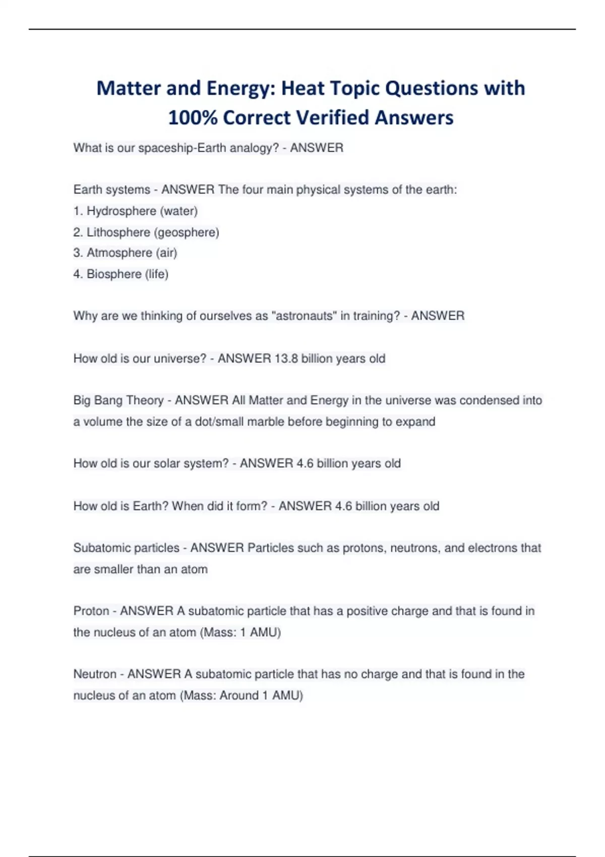 Matter and Energy EXAMS BUNDLE| Questions with 100% Correct Verified Answers