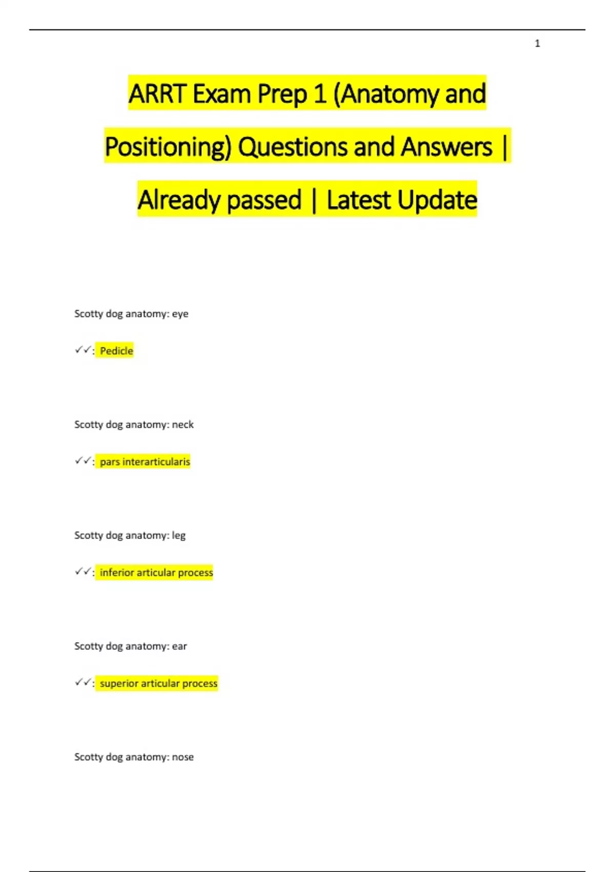 ARRT Exam Prep 1 (Anatomy and Positioning) Questions and Answers | Already passed | Latest Updat