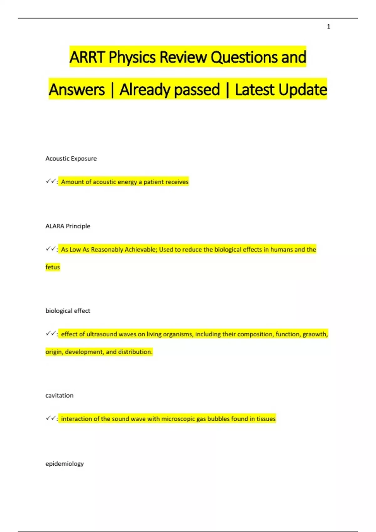 ARRT Physics Review Questions and Answers | Already passed | Latest Update