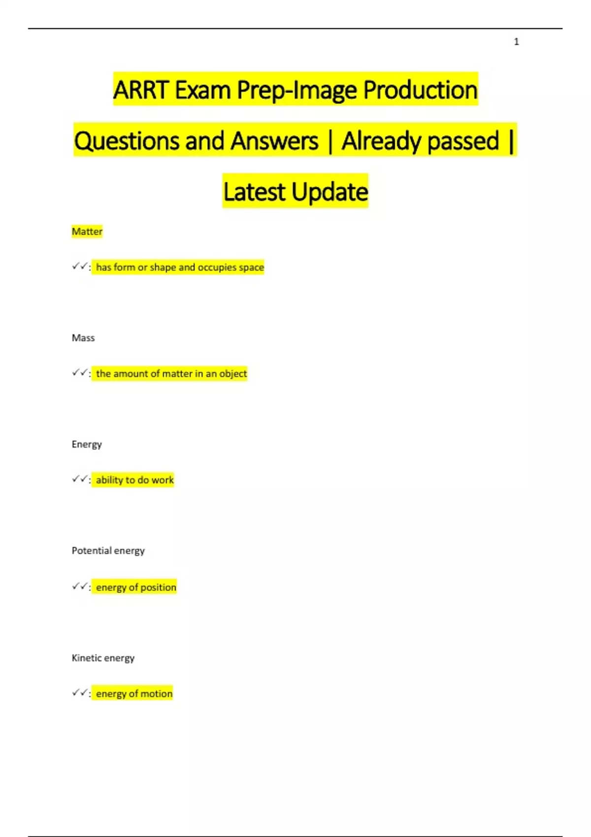 ARRT Exam Prep-Image Production Questions and Answers | Already passed | Latest Update
