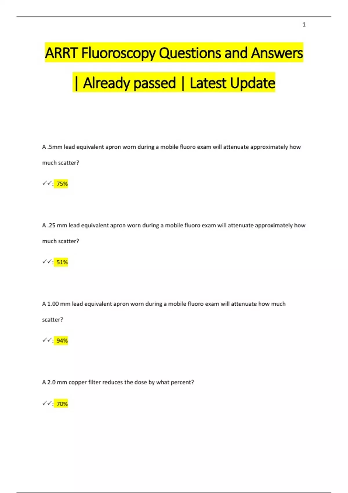 ARRT Fluoroscopy Questions and Answers | Already passed | Latest Update