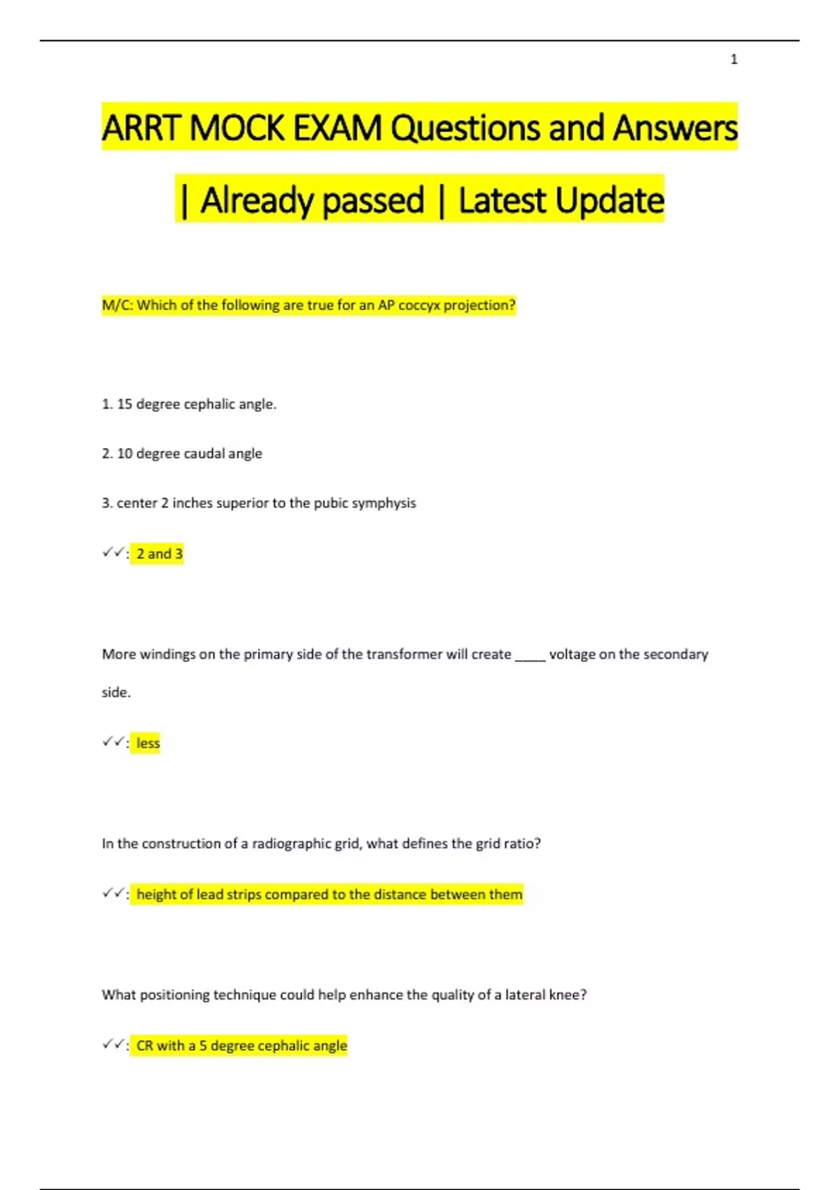 arrt mock exam questions and answers already pa
