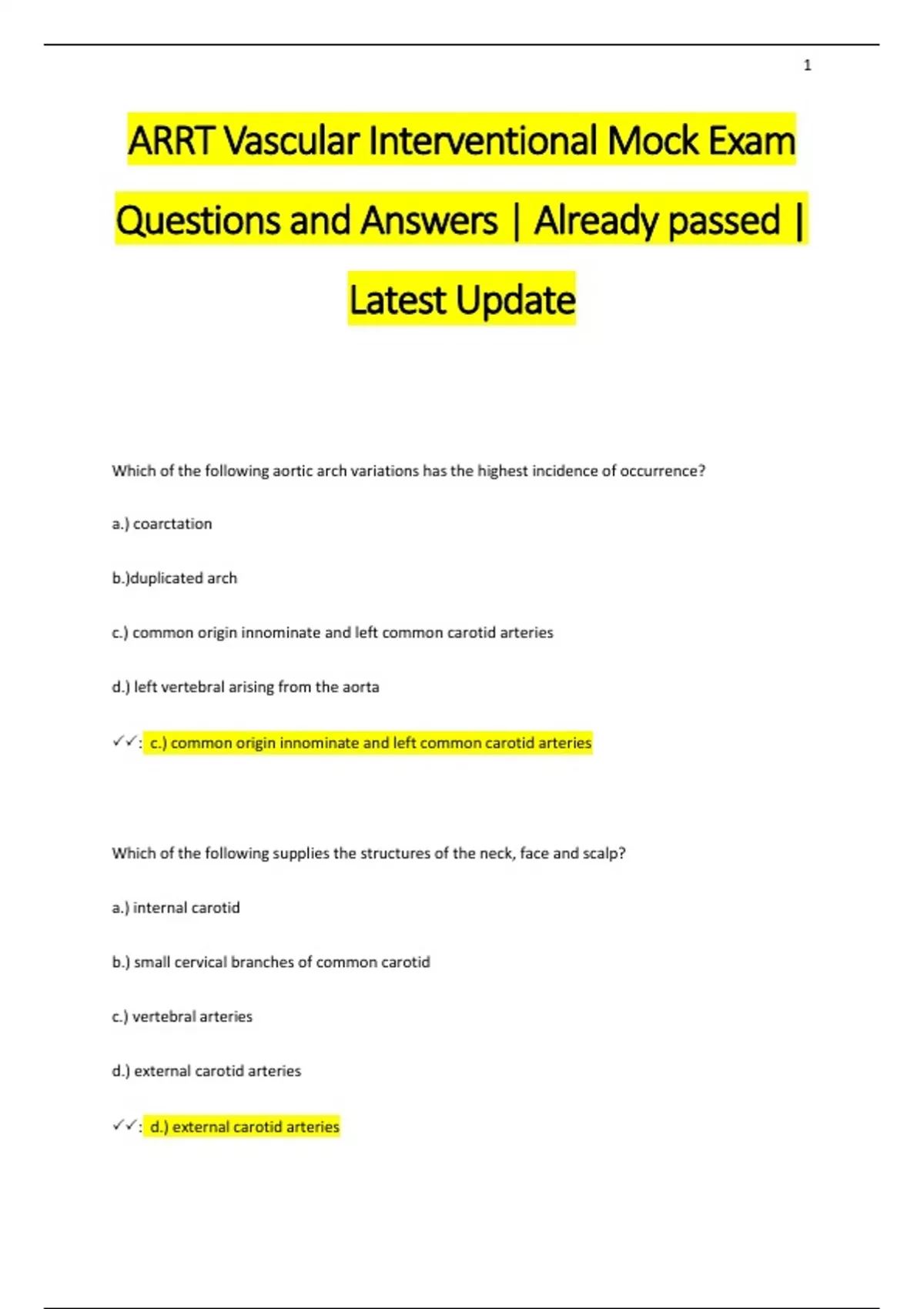 ARRT Vascular Interventional Mock Exam Questions and Answers | Already passed | Latest Update
