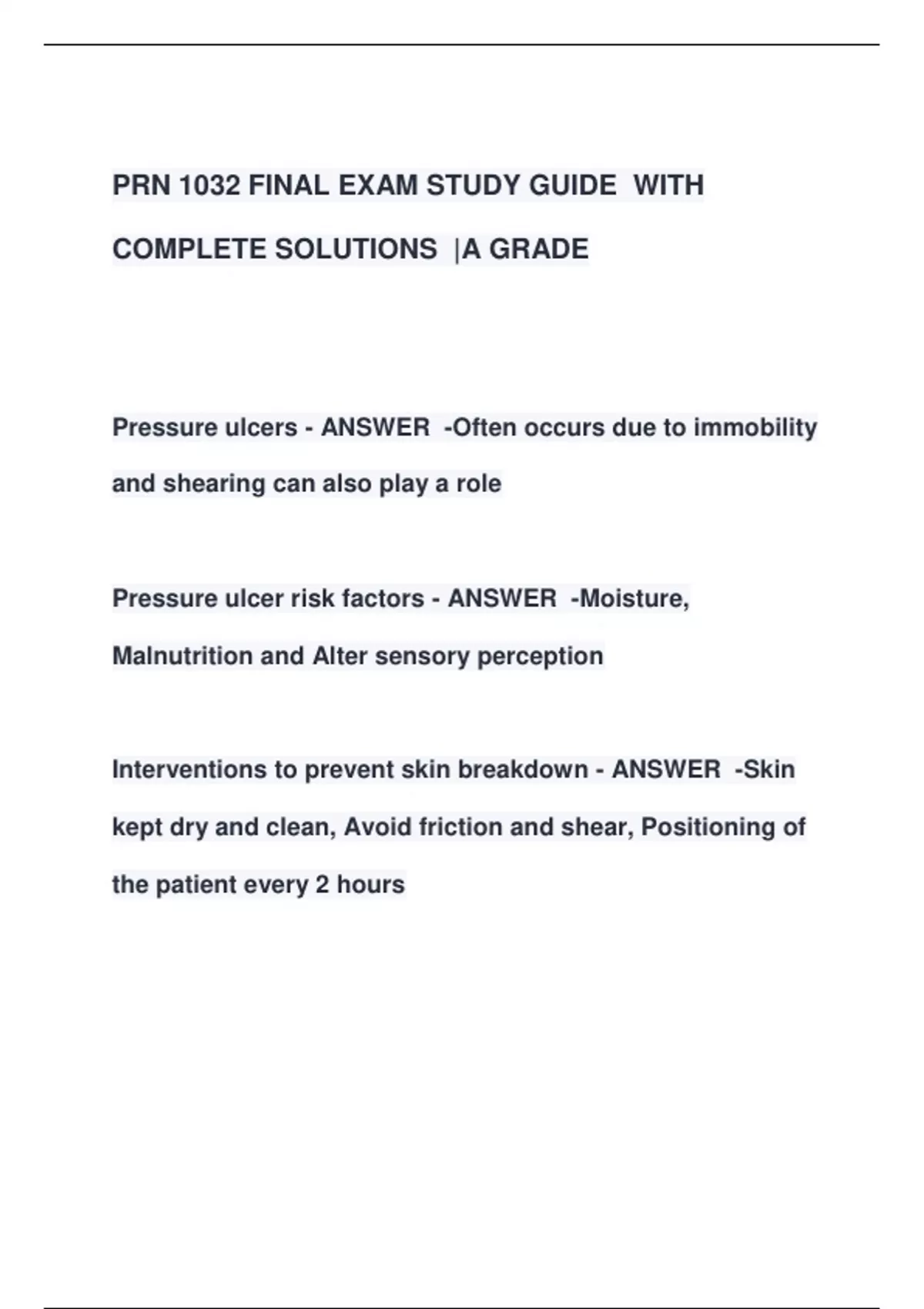 PRN 1032 FINAL EXAM STUDY GUIDE WITH COMPLETE SOLUTIONS |A GRADE