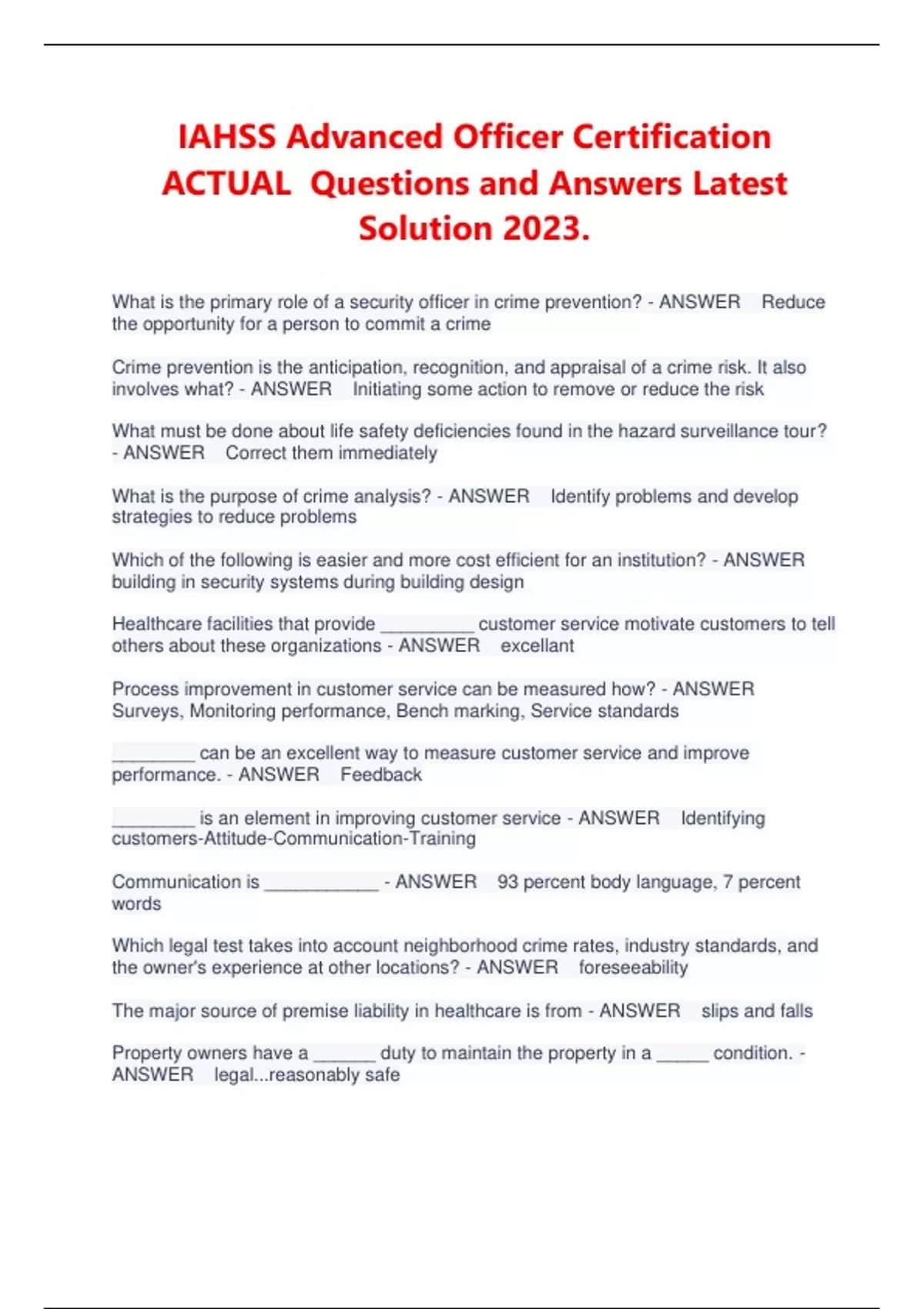 - IAHSS Advanced Officer Certification ACTUAL Ques