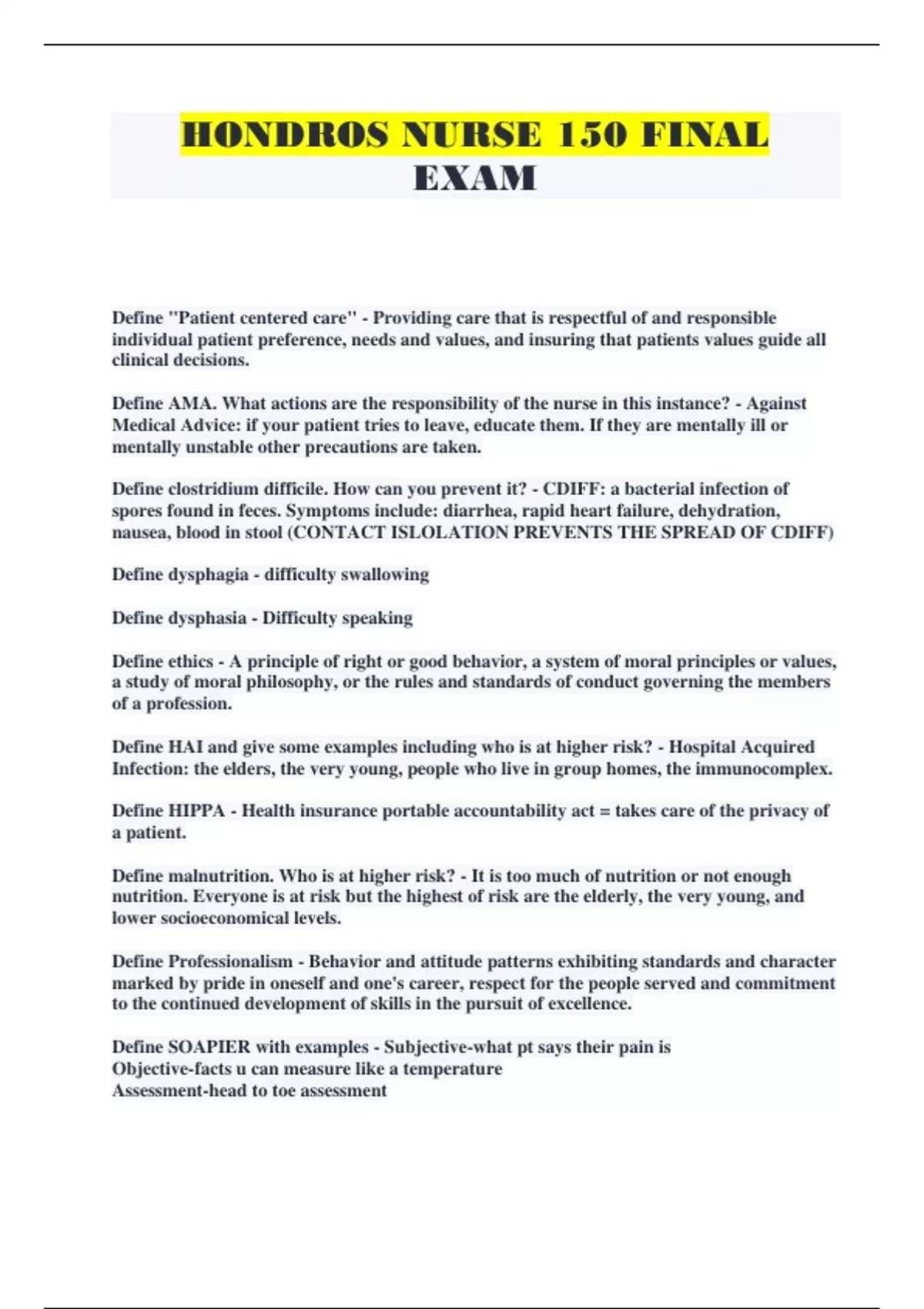 NURSE 150 CORRECT QUESTIONS ANSWERS 100%
