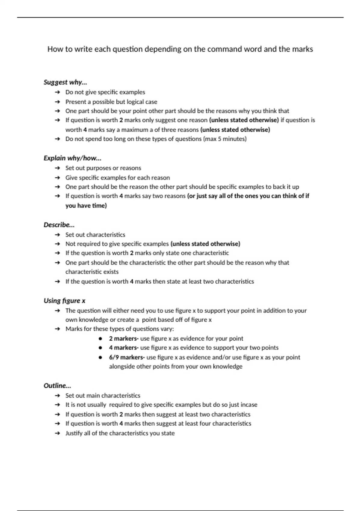 ➔ If question is worth 2 marks only suggest one reason (unless stated otherwise) if question is