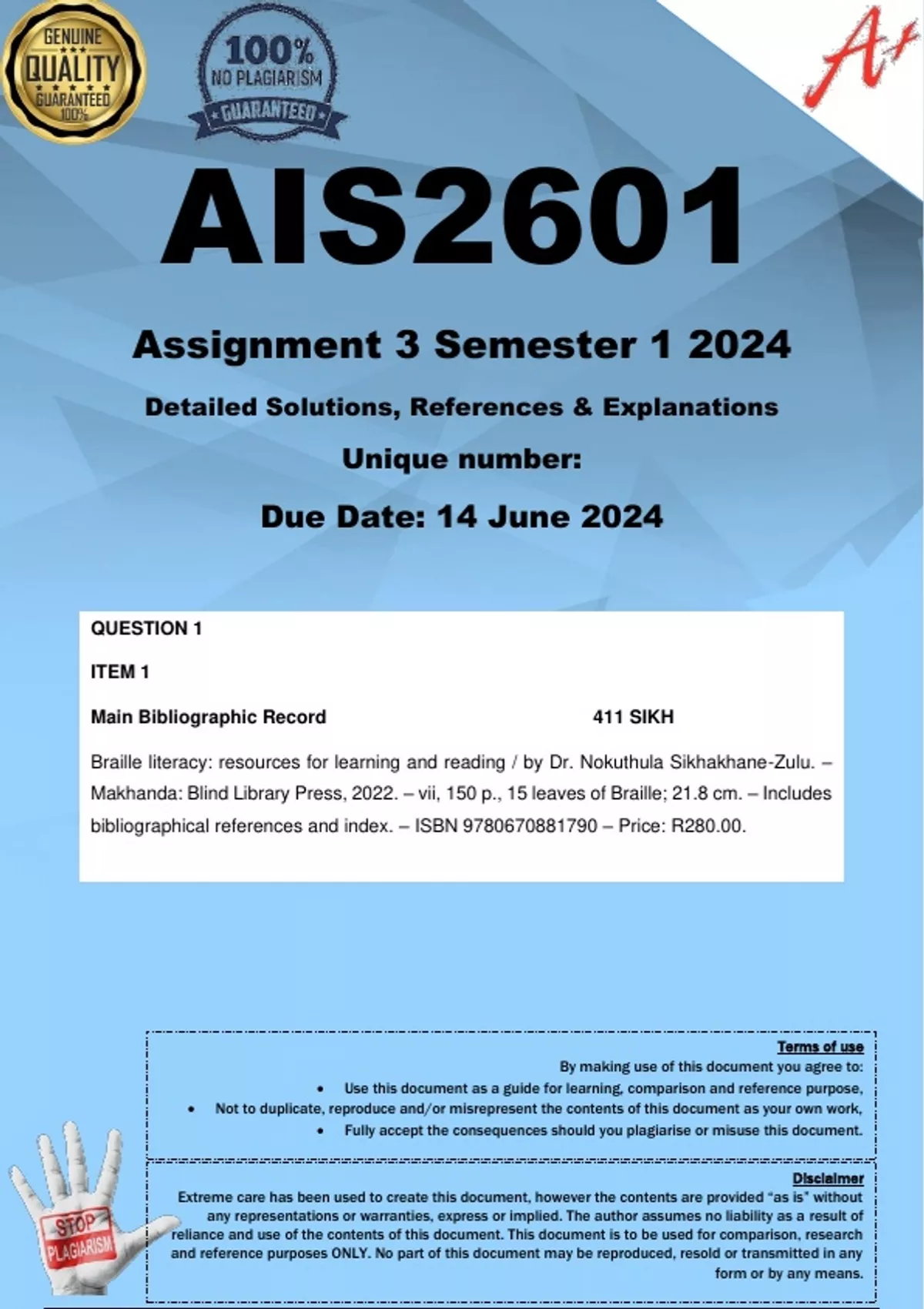 • Not to duplicate, reproduce and/or misrepresent the contents of this document as your own work,