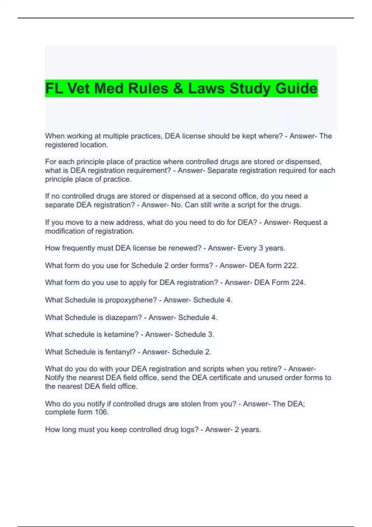 FL Vet Med Rules & Laws Study Guide with correct Answers