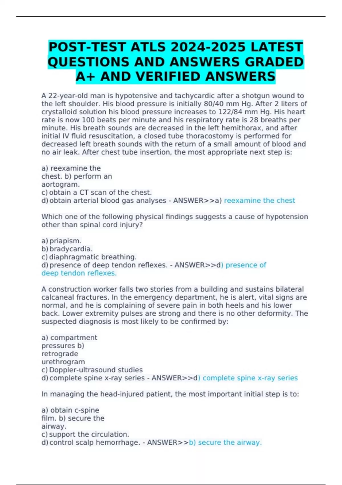 POST-TEST ATLS LATEST QUESTIONS AND ANSWERS GRADED A+ AND VERIFIED ANSWERS