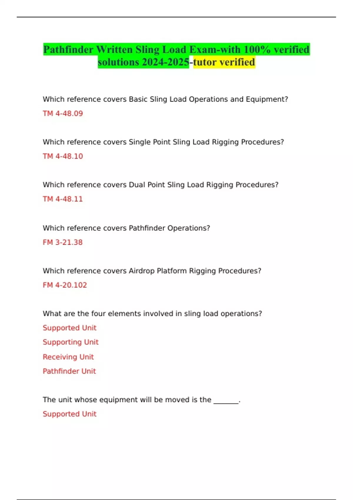 Pathfinder Written Sling Load Exam-with 100% verified solutions -tutor verified