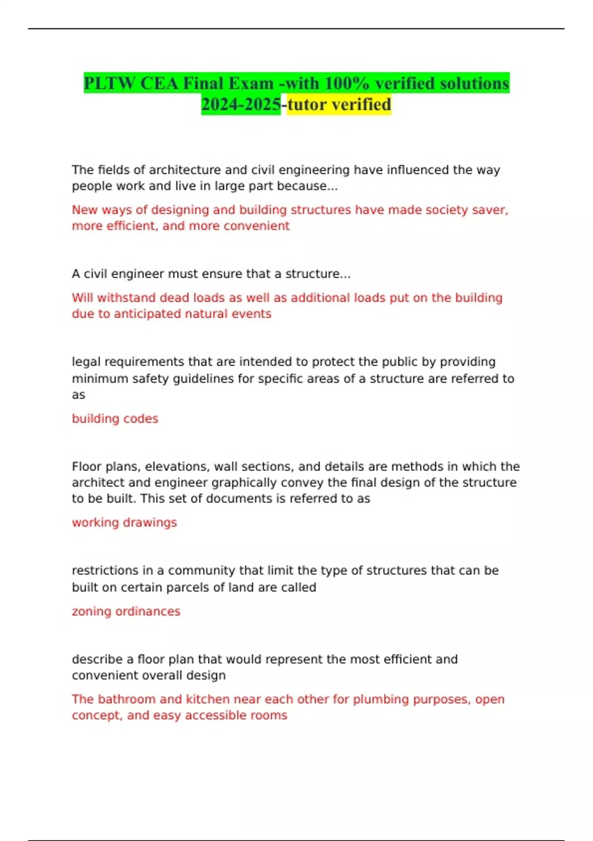 PLTW CEA Final Exam -with 100% verified solutions -tutor verified