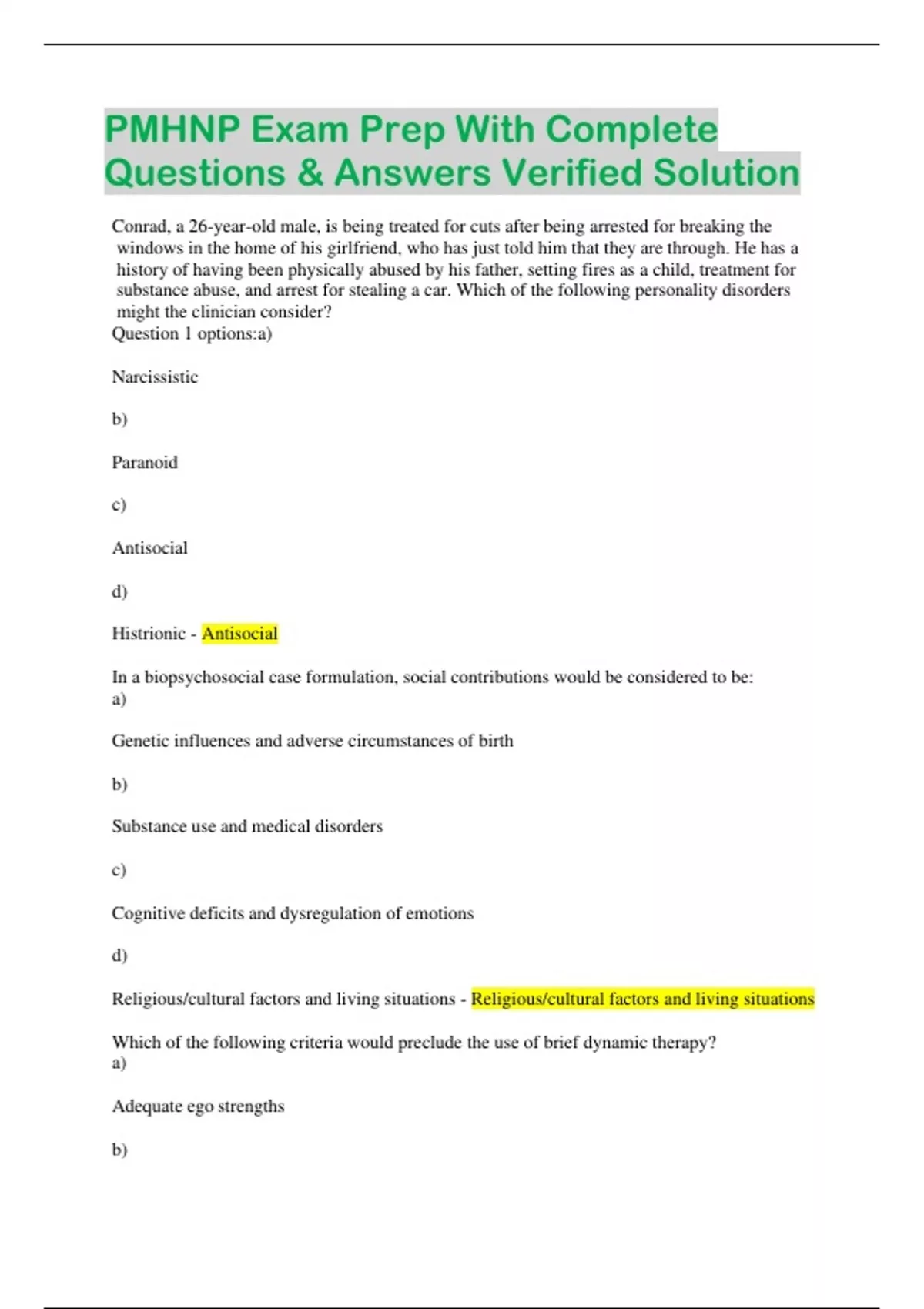 PMHNP Exam Prep With Complete Questions & Answers Verified Solution