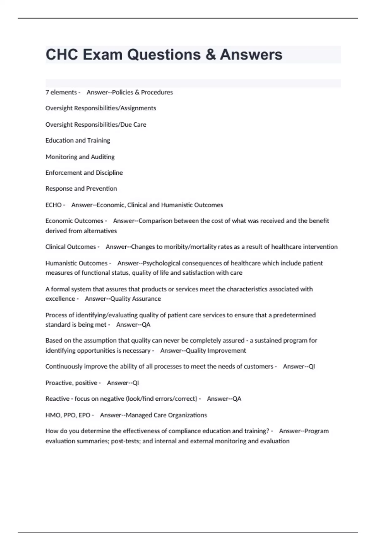 CHC Exam Questions & Answers
